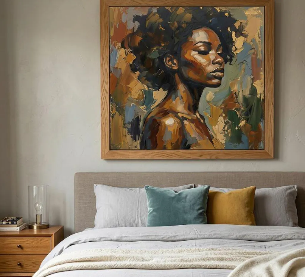 This is not the kind of wall art that fades into the background. Its abstract portrait style adds personality and atmosphere while still feeling clean, modern, and easy to place.